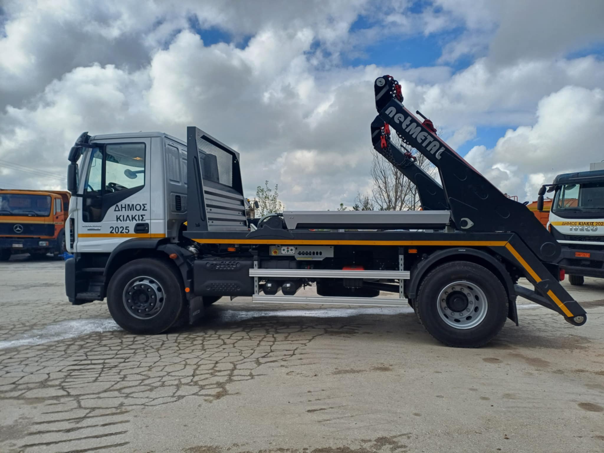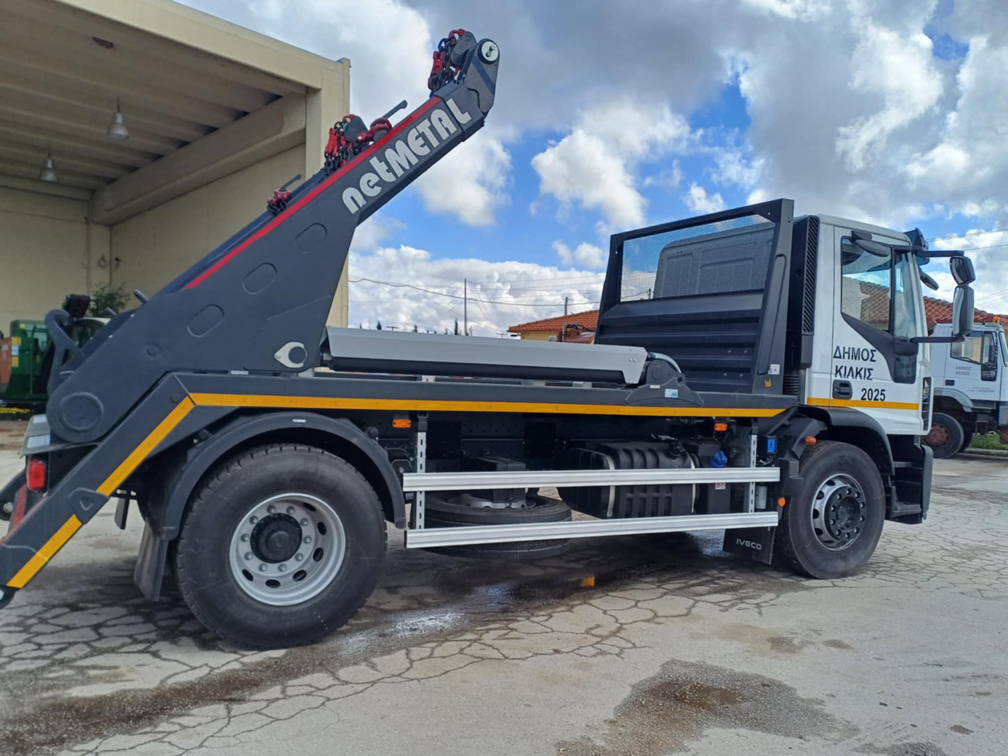 Το όχημα είναι τελευταίας κατασκευής, από τα πλέον εξελιγμένα τεχνολογικά και αποτελείται από φορτηγό – πλαίσιο που φέρει κατάλληλου τύπου υπερκατασκευή για τη συλλογή και μεταφορά ανοιχτών σκαφών αποκομιδής απορριμμάτων – μπαζών.