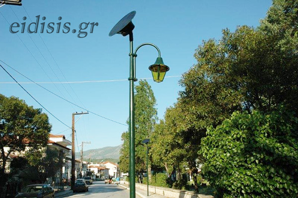 Στο πεζοδρόμιο του δημοτικού καταστήματος τοποθετήθηκαν 5 καλαίσθητοι στύλοι, χρώματος πράσινου, με συλλεκτες ηλιακής ακτινοβολίας και εντυπωσιακά φωτιστικά που δένουν αρμονικά με τον περιβάλλοντα χώρο.