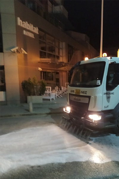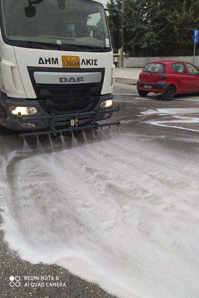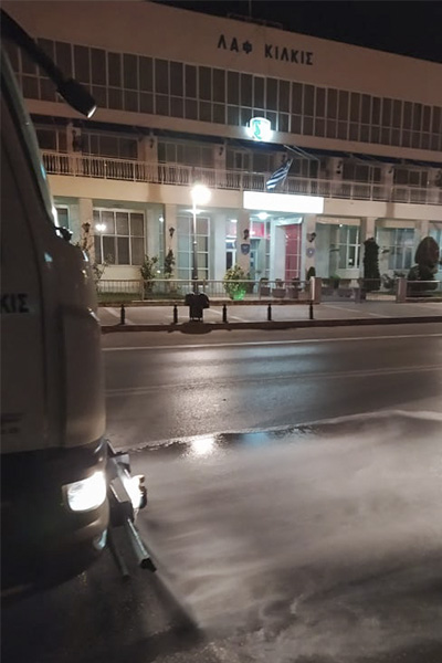 Για προληπτικούς λόγους πραγματοποιήθηκαν και σήμερα, τις πρωινές ώρες, απολυμάνσεις σε κεντρικές οδικές αρτηρίες της πόλης και σε σημεία όπου παρατηρείται μεγαλύτερη πυκνότητα πλήθους (Δημαρχείο, εμπορικό κέντρο, τράπεζες, σούπερ μάρκετς κ.α.). Για τις εργασίες καθαρισμού χρησιμοποιήθηκε το πλυντήριο κάδων, που πέρα από τη συμβατική του χρήση, εξυπηρέτησε την πλύση – απολύμανση δρόμων του Κιλκίς.