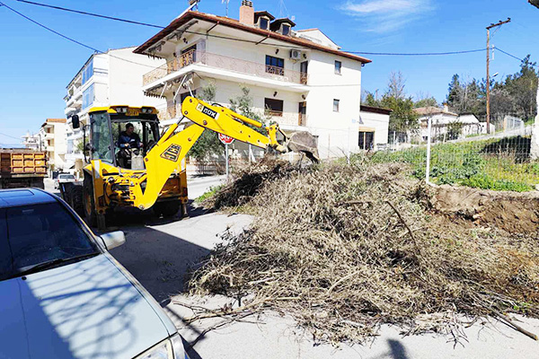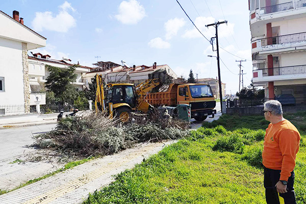 Με τη διάθεση JCB και φορτηγού από τον Αντιδήμαρχο Διαχείρισης Μηχανημάτων Αλέξανδρο Σημαιοφορίδη απομακρύνονται αυτό το διάστημα μεγάλες ποσότητες κλαδιών από γειτονιές της πόλης. Συγχρόνως συνεργείο της Διεύθυνσης Καθαριότητας, υπό την επίβλεψη του Αντιδημάρχου Καθαριότητας Κωνσταντίνου Παπακώστα, μεριμνά για την συγκέντρωση και παραλαβή ογκωδών απορριμμάτων (καναπέδες, μπάζα, παλιά στρώματα).