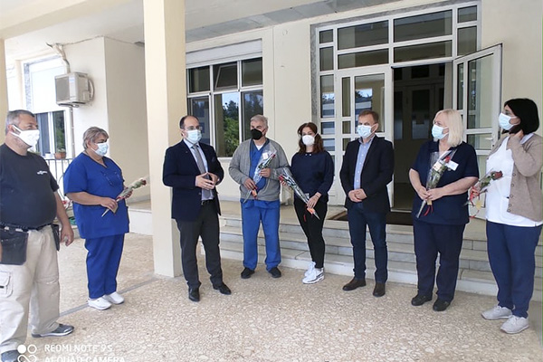 Στην είσοδο του Διοικητηρίου,παρουσία του Διοικητή του νοσηλευτικού ιδρύματος Γιάννη Ανδρίτσου και του Προέδρου της Κοινότητας Κιλκίς Αθανάσιου Καριοφύλλη, ο Δήμαρχος Κιλκίς εξήρε το έργο των νοσηλευτών και την κοινωνική αποστολή που επιτελούν υπογραμμίζοντας μεταξύ άλλων ότι και αυτή τη δύσκολη περίοδο βρίσκονται πρώτοι στις επάλξεις του υγειονομικού αγώνα για την αντιμετώπιση της πανδημίας. Σε αναγνώριση της επαγγελματικής ευσυνειδησίας και της κατάθεσης των δυνάμεών τους στην προστασία της ανθρώπινης ζωής ο Δήμαρχος Κιλκίς χάρισε συμβολικά ένα κόκκινο τριαντάφυλλο στη διευθύνουσα της νοσηλευτικής υπηρεσίας Αθηνά Κολεσίδου στη Βαρβάρα Αβραμίδου τομεάρχη – νοσηλεύτρια του παθολογικού τμήματος στο Θεόδωρο Νικολάου τομεάρχη – νοσηλευτή του ψυχιατρικού τμήματος και στην Πρόεδρο του Σωματείου Εργαζομένων του Νοσοκομείου Σοφία Καπαλτσίδου. Την συμβολή των νοσηλευτών στην παροχή ποιοτικών υπηρεσιών στις δημόσιες δομές υγείας επισήμανε και ο Διοικητής του Γενικού Νοσοκομείου Κιλκίς ενώ στη συνέχεια όλοι επισκέφθηκαν το εμβολιαστικό κέντρο κατά της Covid – 19 και συνεχάρησαν το προσωπικό του για την οργάνωση και τις εξαιρετικές υπηρεσίες που παρέχει στους συμπολίτες μας.