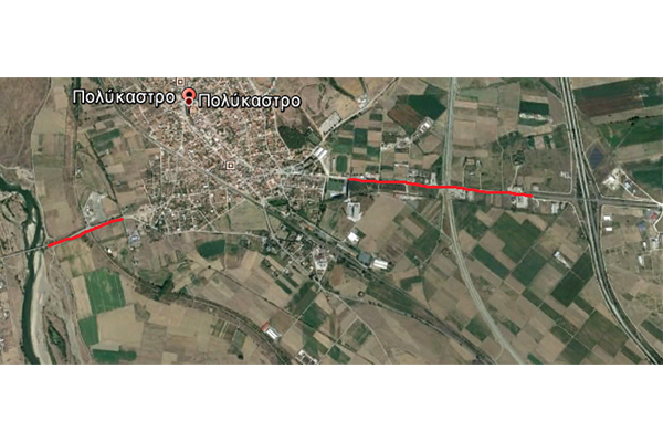 2. Την κατασκευή τμημάτων πεζοδρομίου στην δεξιά πλευρά της επαρχιακής οδού Πολυκάστρου-Κιλκίς συνολικού μήκους 1.376 μέτρων.
