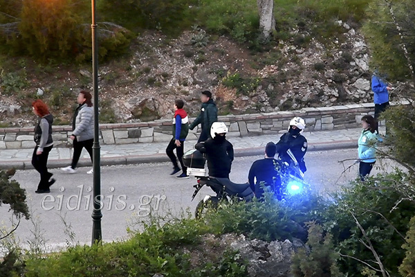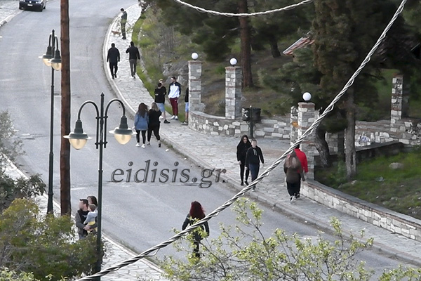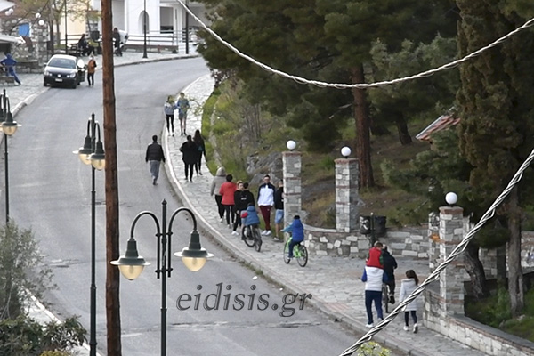 Νεολαίοι -κυρίως- ζευγάρια ή οικογένειες με τα παιδιά, πεζή ή με τα ποδήλατα, γυροφέρνουν στα έτσι κι αλλιώς στενά πεζοδρόμια του περιφερειακού δρόμου. Μερικοί αγκαλιάζονται κιόλας με τους φίλους, μετά από τόσες ημέρες που έχουν να ιδωθούν!