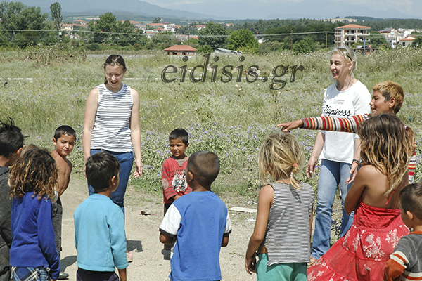 Η ολιγόωρη παραμονή στον καταυλισμό, έδωσε την ευκαιρία στην κοινωνική λειτουργό και την ψυχολόγο του Δήμου να παίξουν μπάλα και “μηλαράκια” με τα παιδιά.