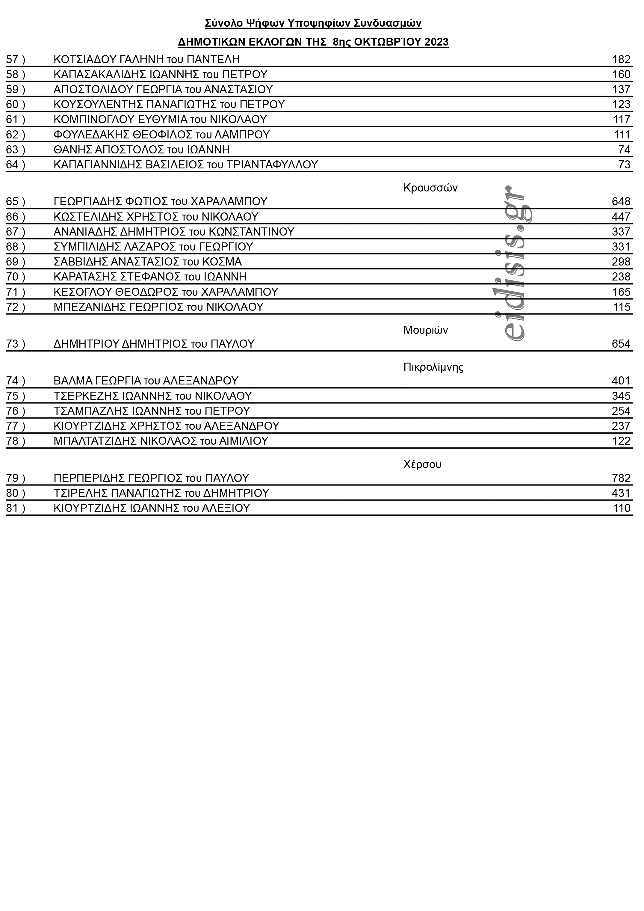 Οι σταυροί των υποψηφίων δημοτικών συμβούλων Κιλκίς - Συνδυασμός Θεόδωρου Βαφειάδη