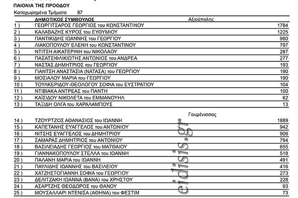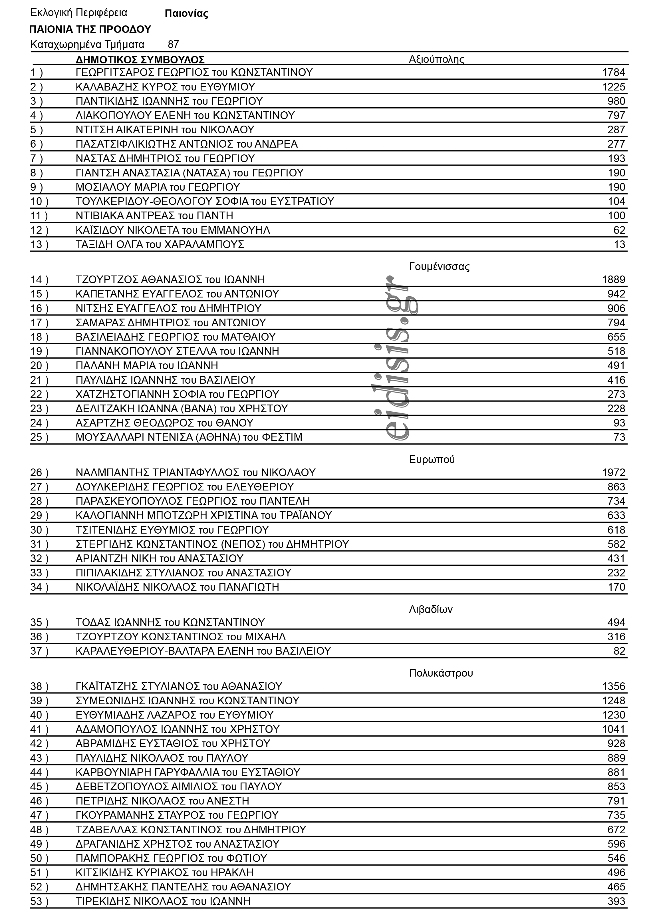 Οι σταυροί των υποψηφίων δημοτικών συμβούλων Παιονίας - Συνδυασμός Κ. Σιωνίδη
