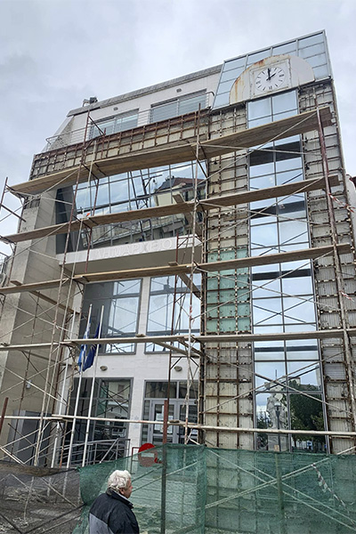 Ολοκληρώθηκαν λοιπόν οι αναγκαίες εργασίες αποκατάστασης της πρόσοψης και στεγανοποίησης της οροφής του κτηρίου το οποίο και κοσμεί το κέντρο της Αξιούπολης.