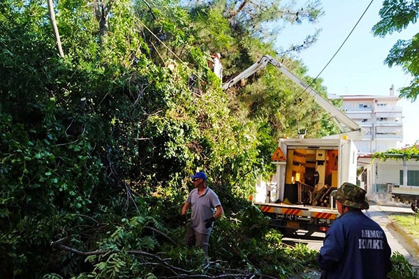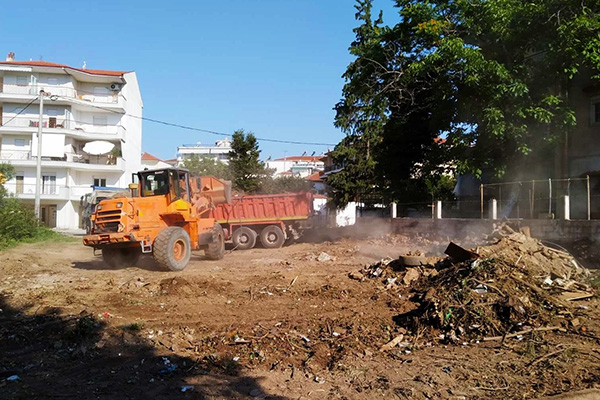 Για τον καθαρισμό του οικοπέδου που θύμιζε δάσος καθώς είχε καταληφθεί από δέντρα και πυκνή βλάστηση, επιστρατεύθηκαν εργάτες και με τη συνδρομή ενός JCB ενός φορτωτή, δύο φορτηγών και ενός καλαθοφόρου μηχανήματος κατάφεραν να τιθασεύσουν το χώρο κόβοντας κορμούς και κλαδιά δέντρων και απομακρύνοντας τη φυτική ύλη που είχε συγκεντρωθεί. Η παρέμβαση έγινε σε έκταση 257,35 τ.μ. και το οικόπεδο κυριολεκτικά απέκτησε άλλη όψη.