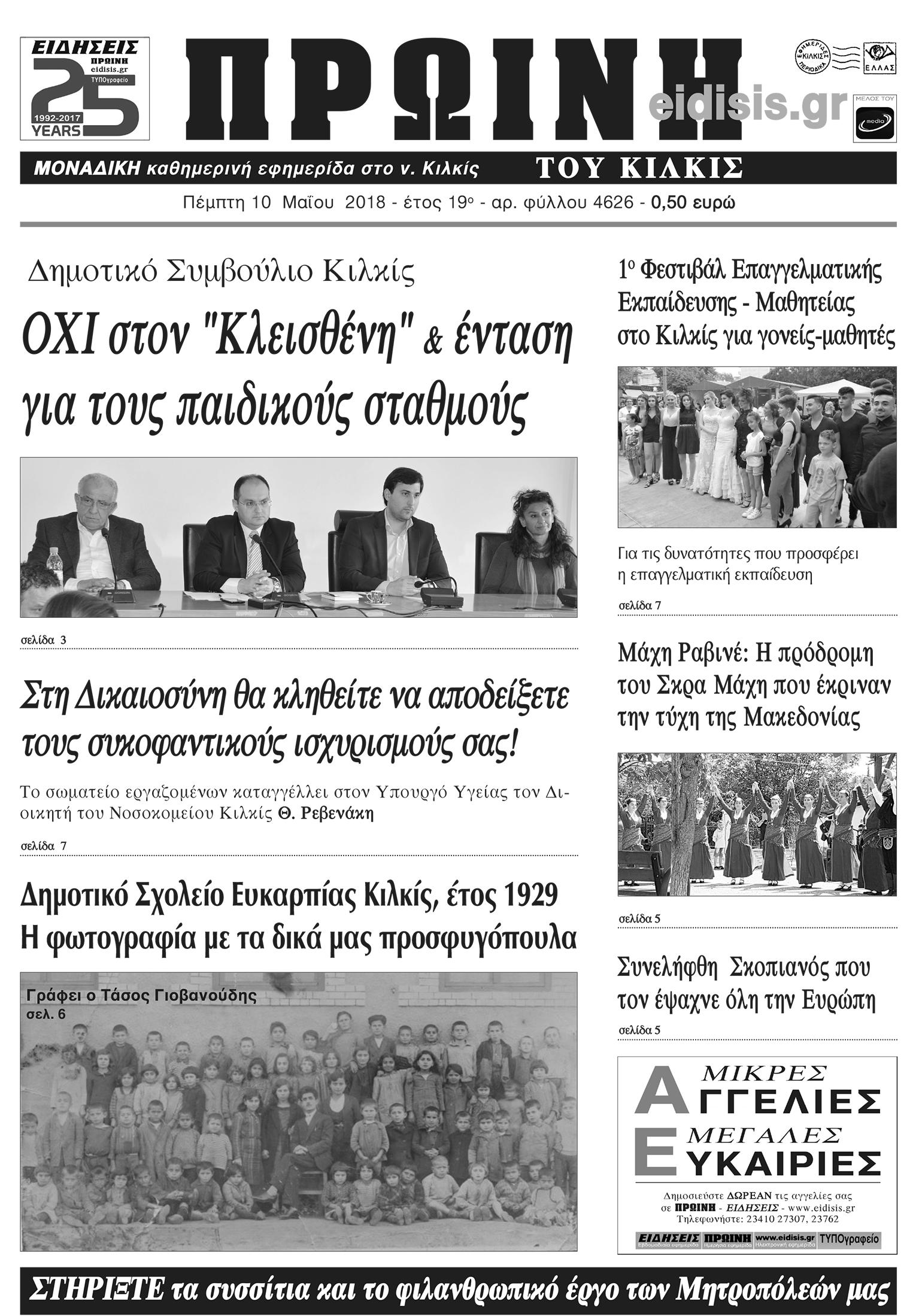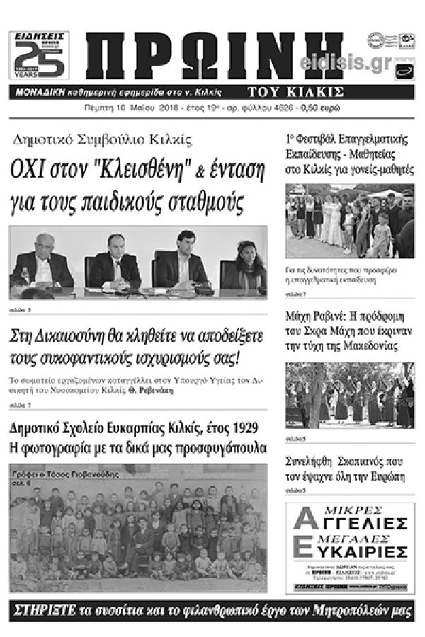 Πέντε χρόνια πριν. Διαβάστε τι έγραφε η καθημερινή εφημερίδα ΠΡΩΙΝΗ του Κιλκίς (10-5-2018)