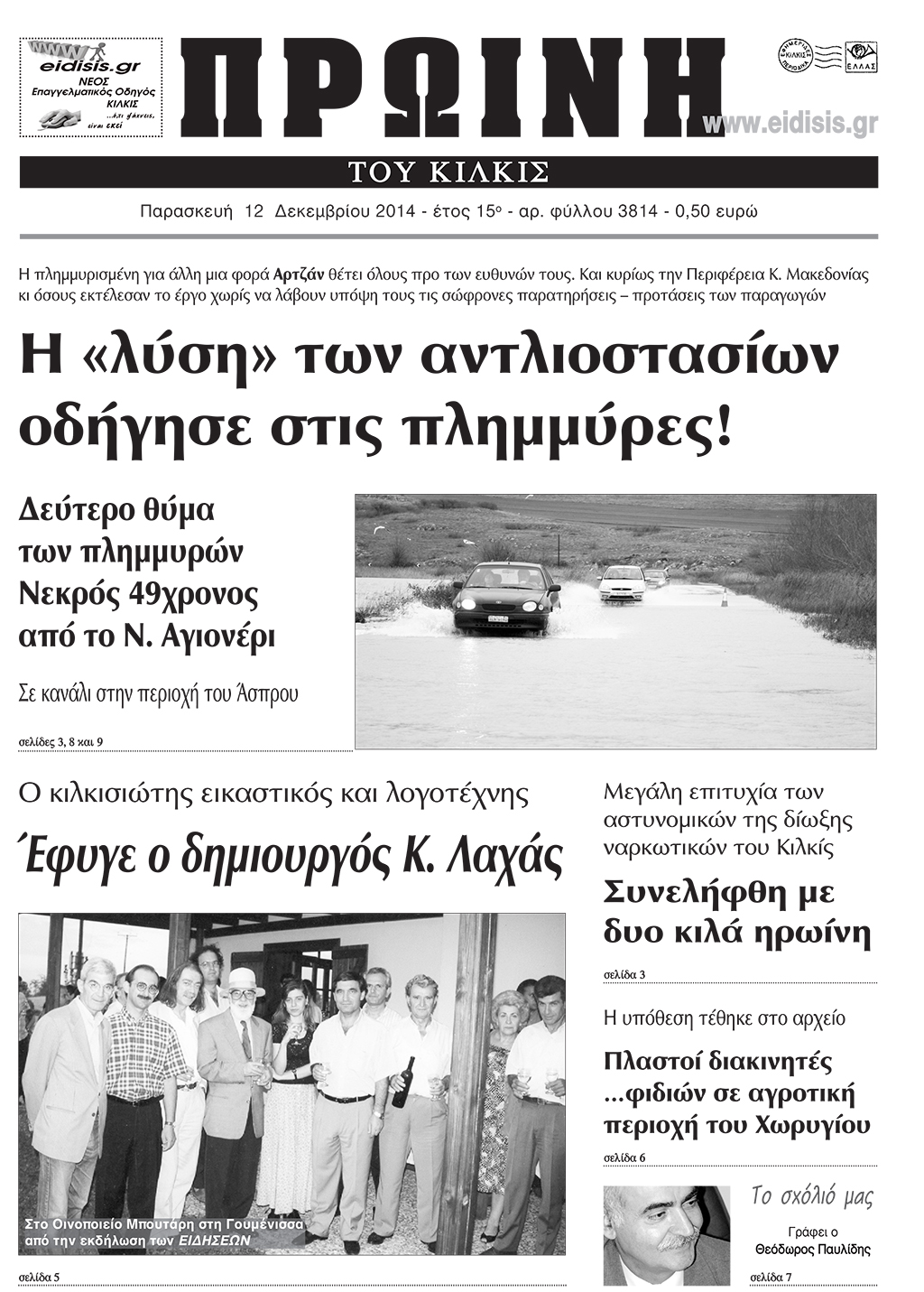 Πέντε χρόνια πριν. Διαβάστε τι έγραφε η καθημερινή εφημερίδα ΠΡΩΙΝΗ του Κιλκίς (12-12-2014)