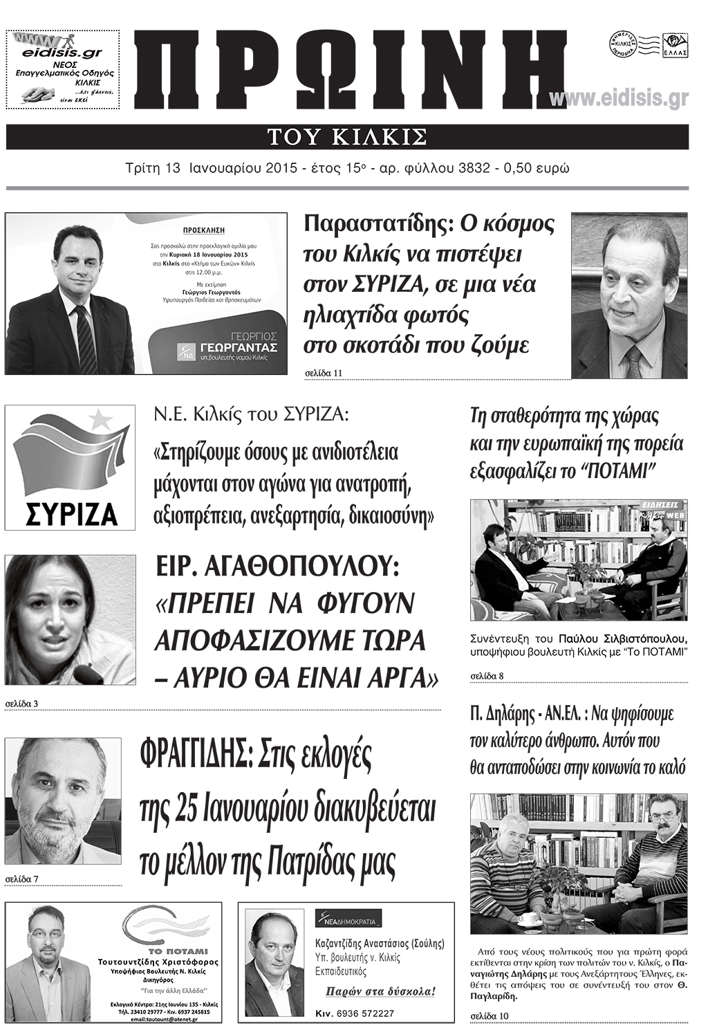 Πέντε χρόνια πριν. Διαβάστε τι έγραφε η καθημερινή εφημερίδα ΠΡΩΙΝΗ του Κιλκίς (13-1-2015)