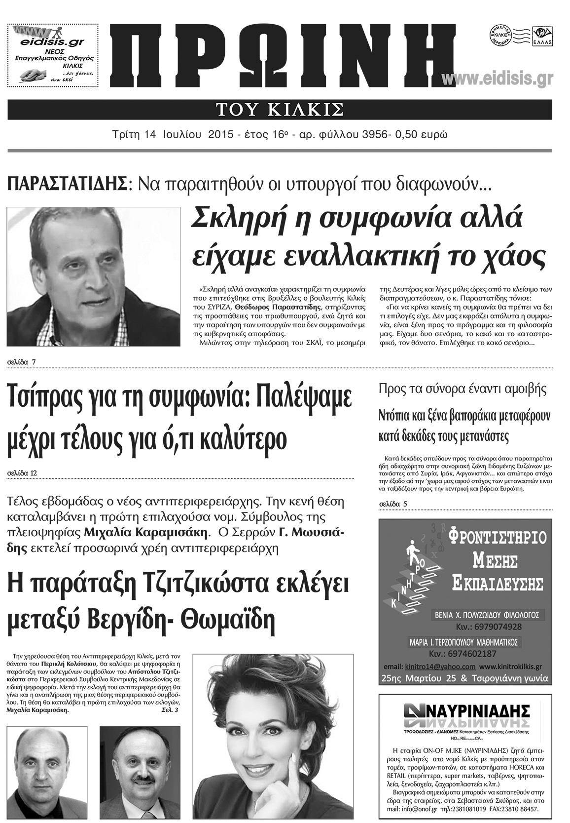 Πέντε χρόνια πριν. Διαβάστε τι έγραφε η καθημερινή εφημερίδα ΠΡΩΙΝΗ του Κιλκίς (14-7-2015)