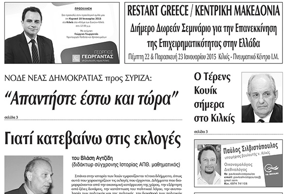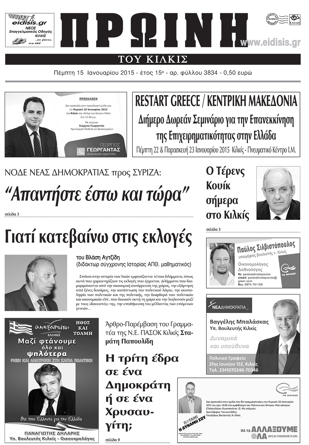 Πέντε χρόνια πριν. Διαβάστε τι έγραφε η καθημερινή εφημερίδα ΠΡΩΙΝΗ του Κιλκίς (15-1-2015)