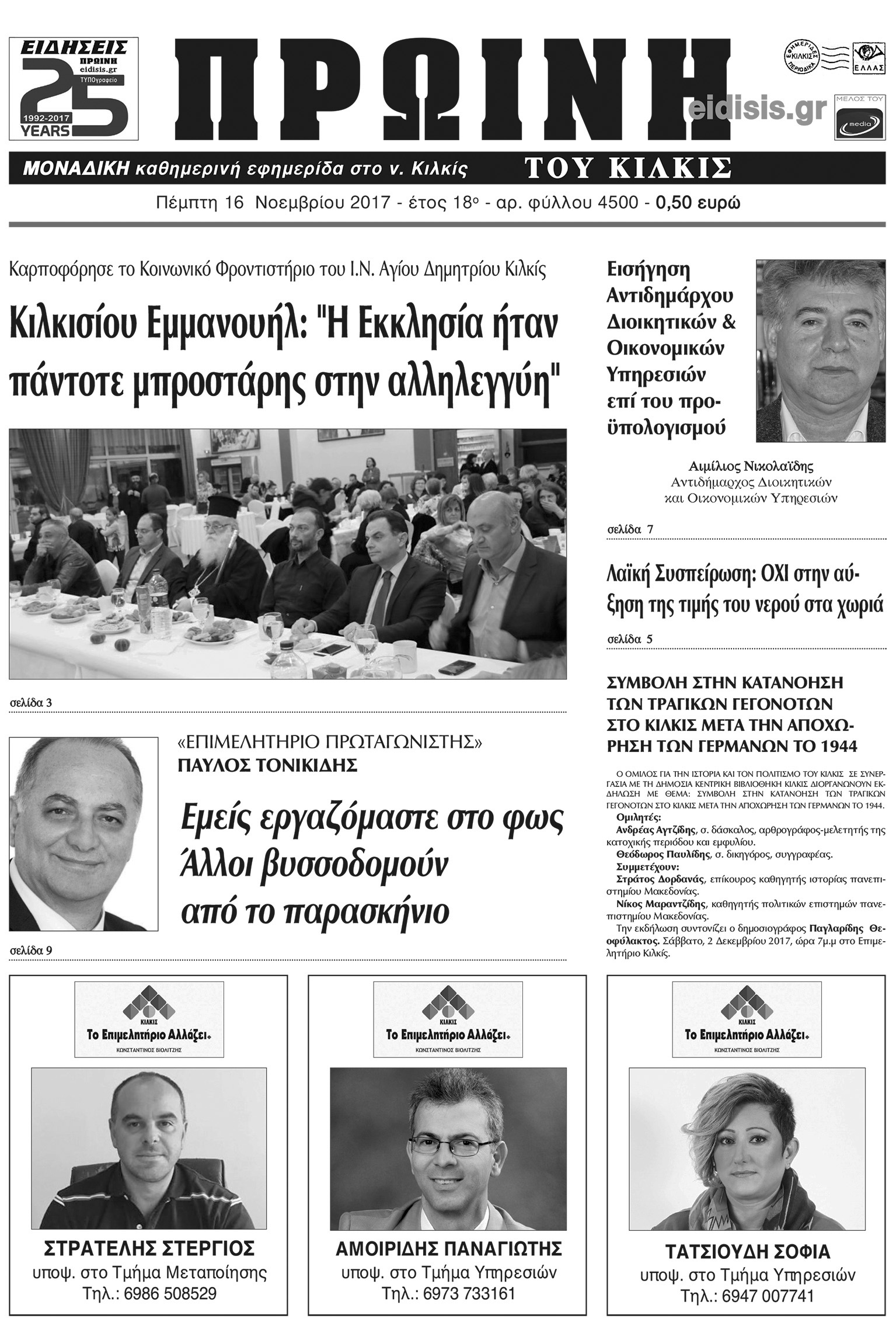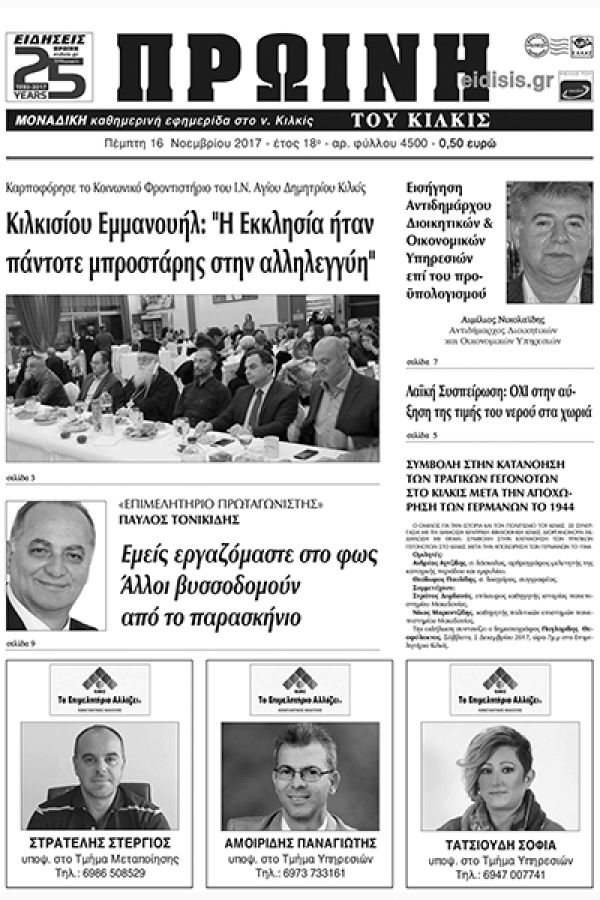 Πέντε χρόνια πριν. Διαβάστε τι έγραφε η καθημερινή εφημερίδα ΠΡΩΙΝΗ του Κιλκίς (16-11-2017)