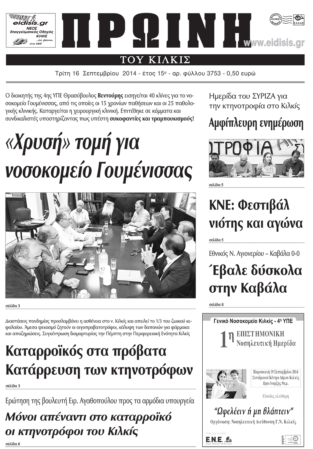Πέντε χρόνια πριν. Διαβάστε τι έγραφε η καθημερινή εφημερίδα ΠΡΩΙΝΗ του Κιλκίς (16-9-2014)