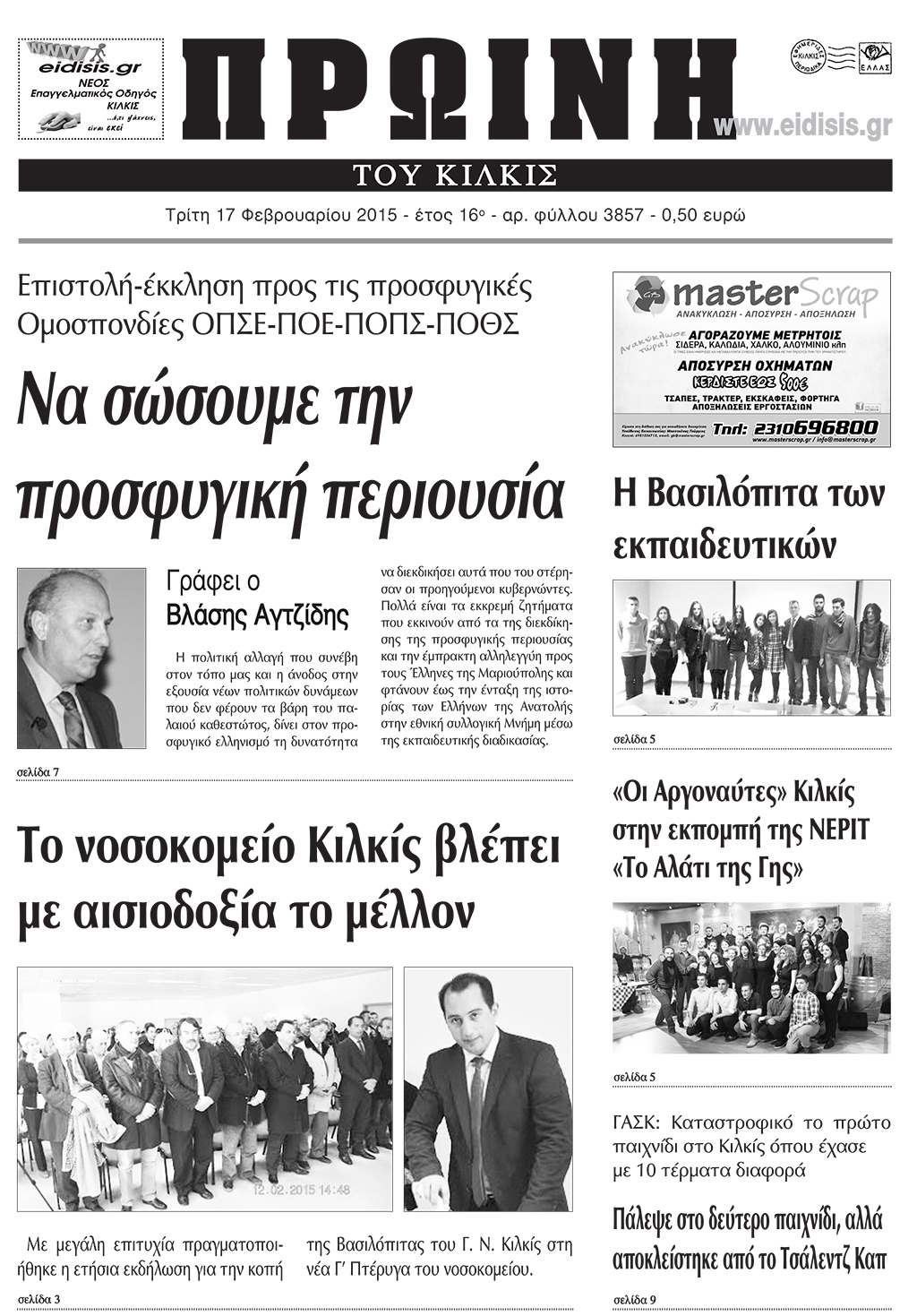 Πέντε χρόνια πριν. Διαβάστε τι έγραφε η καθημερινή εφημερίδα ΠΡΩΙΝΗ του Κιλκίς (17-2-2015)