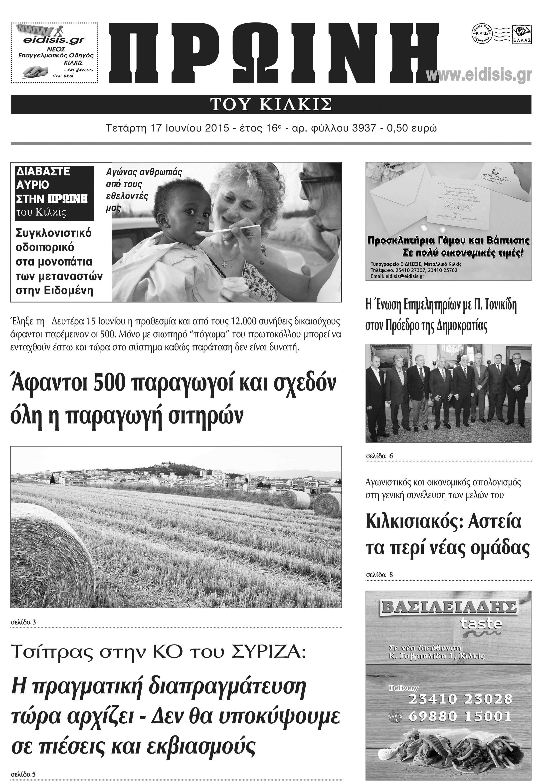 Πέντε χρόνια πριν. Διαβάστε τι έγραφε η καθημερινή εφημερίδα ΠΡΩΙΝΗ του Κιλκίς (17-6-2015)