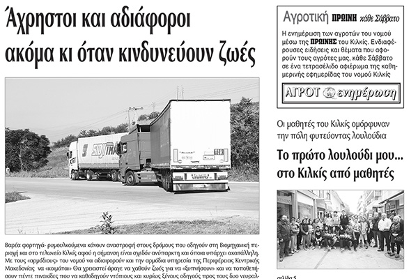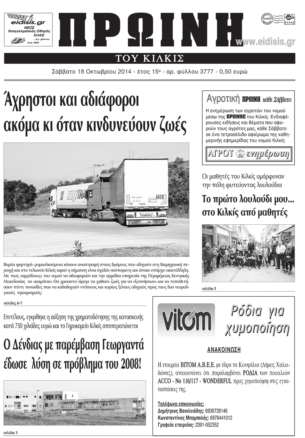 Πέντε χρόνια πριν. Διαβάστε τι έγραφε η καθημερινή εφημερίδα ΠΡΩΙΝΗ του Κιλκίς (18-10-2014)