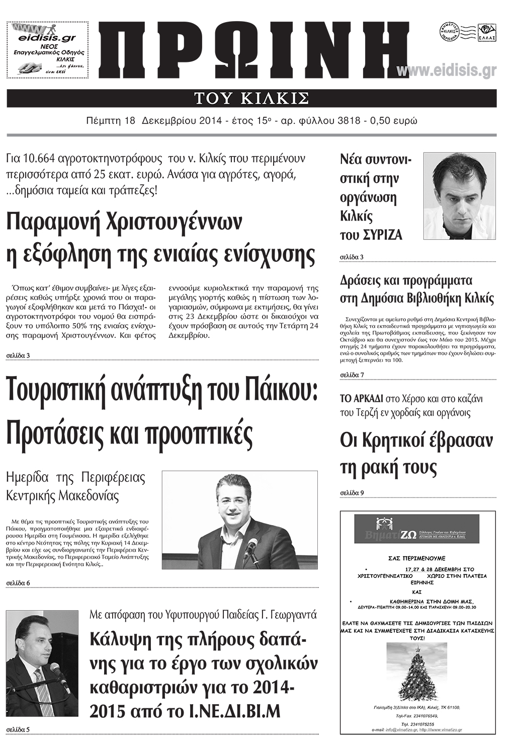 Πέντε χρόνια πριν. Διαβάστε τι έγραφε η καθημερινή εφημερίδα ΠΡΩΙΝΗ του Κιλκίς (18-12-2014)