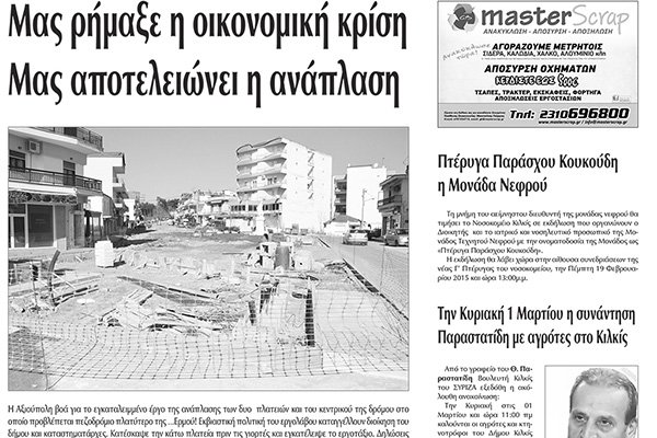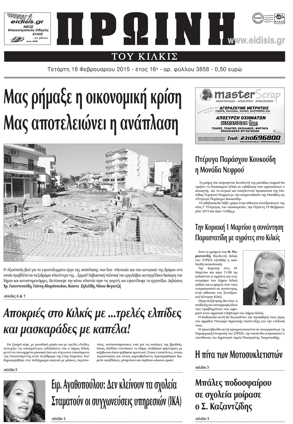 Πέντε χρόνια πριν. Διαβάστε τι έγραφε η καθημερινή εφημερίδα ΠΡΩΙΝΗ του Κιλκίς (18-2-2015)