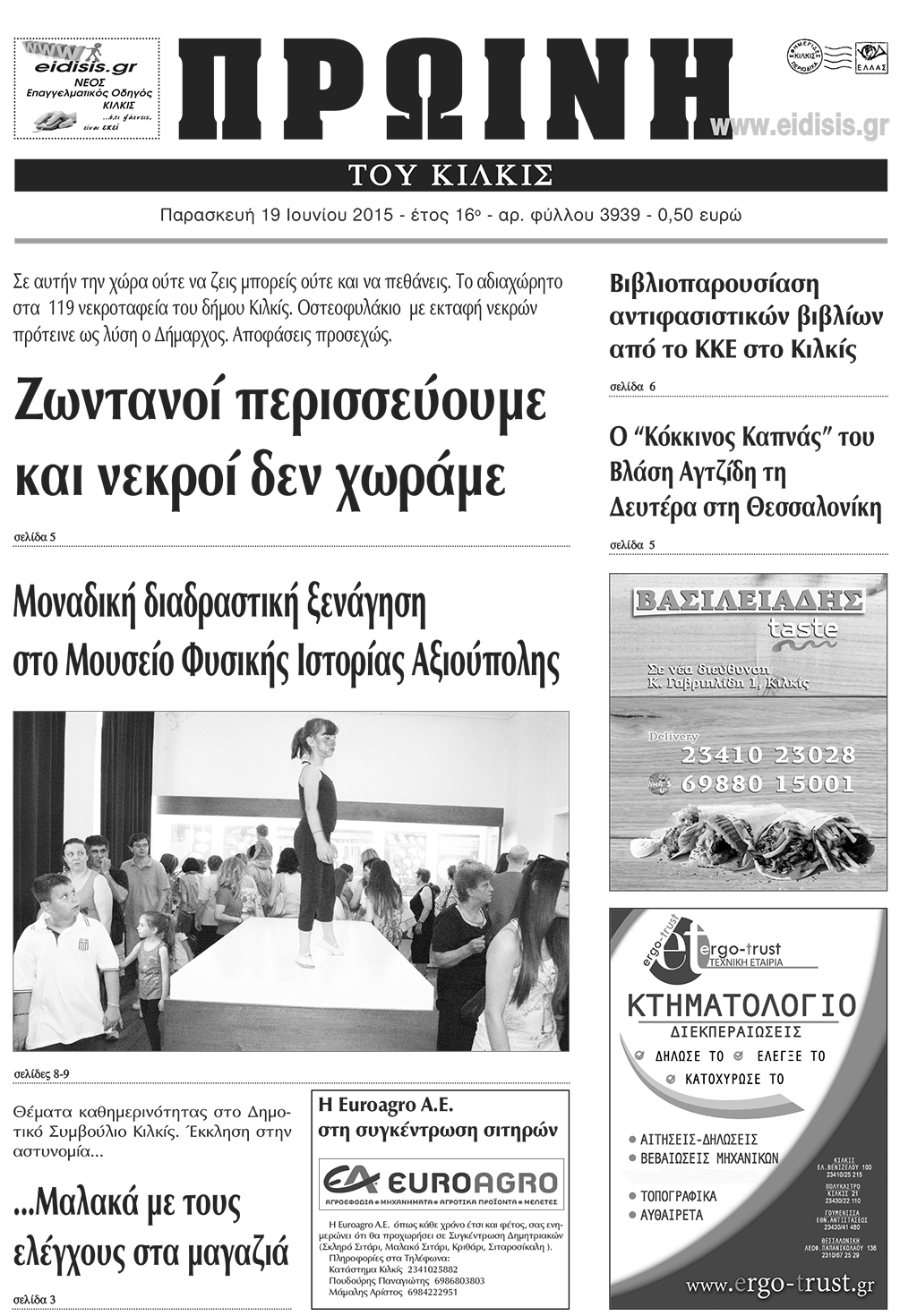 Πέντε χρόνια πριν. Διαβάστε τι έγραφε η καθημερινή εφημερίδα ΠΡΩΙΝΗ του Κιλκίς (19-6-2015)