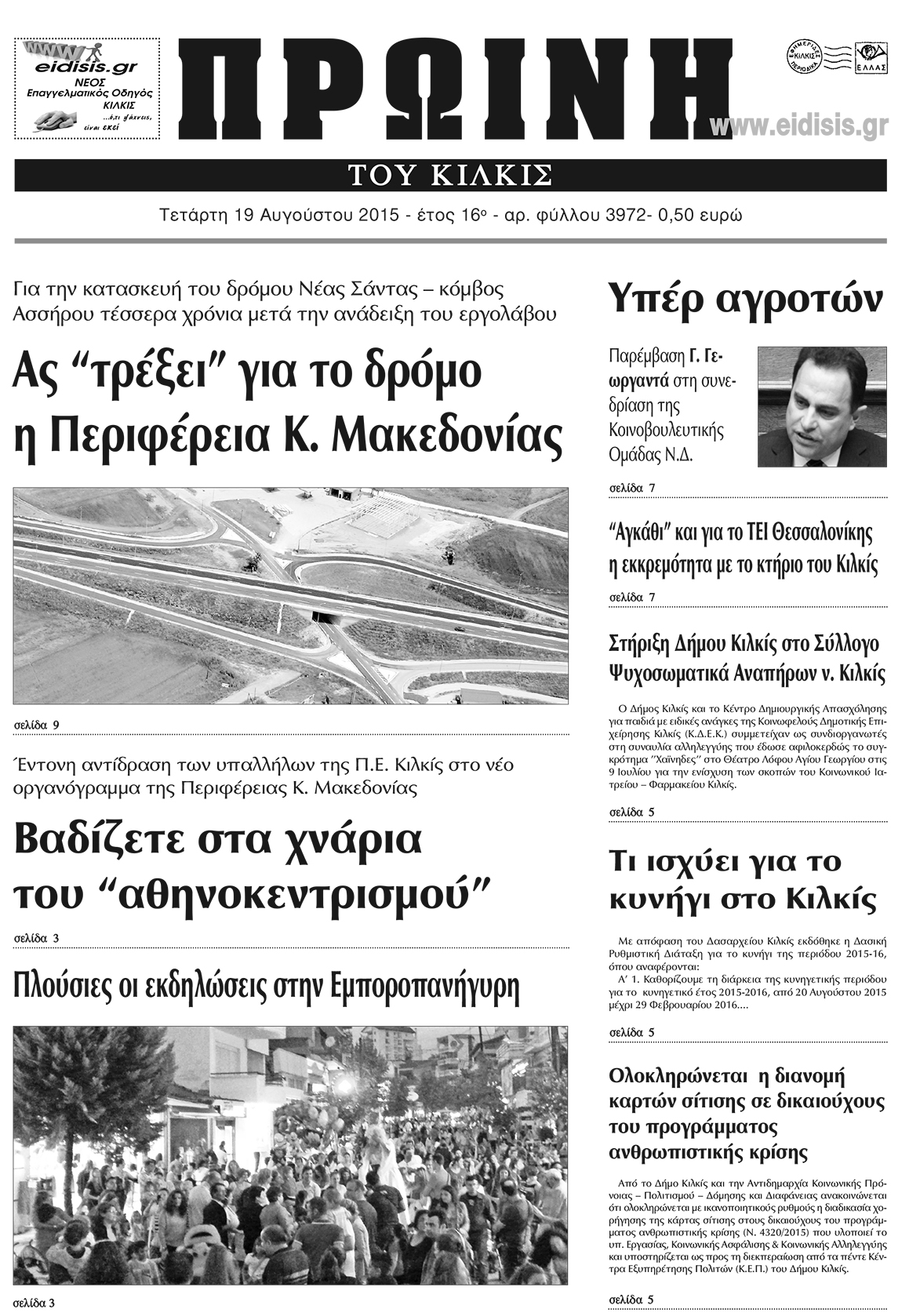 Πέντε χρόνια πριν. Διαβάστε τι έγραφε η καθημερινή εφημερίδα ΠΡΩΙΝΗ του Κιλκίς (19-8-2015)