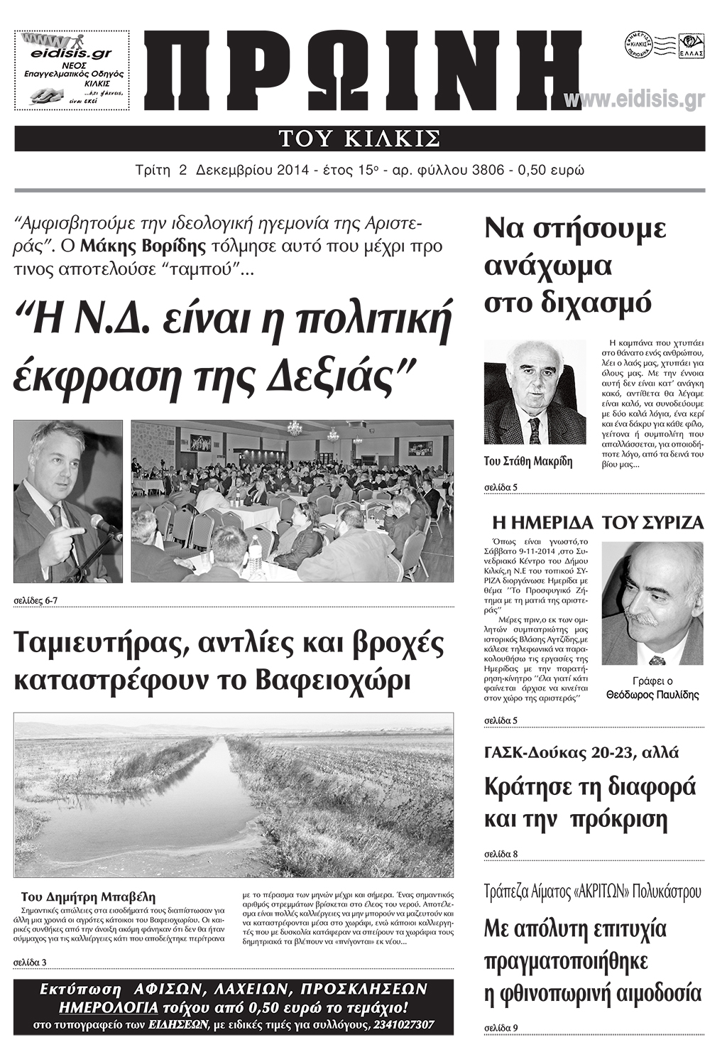Πέντε χρόνια πριν. Διαβάστε τι έγραφε η καθημερινή εφημερίδα ΠΡΩΙΝΗ του Κιλκίς (2-12-2014)