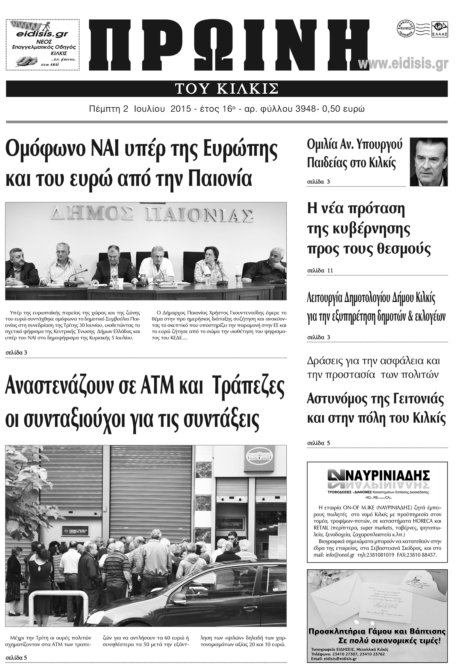 Πέντε χρόνια πριν. Διαβάστε τι έγραφε η καθημερινή εφημερίδα ΠΡΩΙΝΗ του Κιλκίς (2-7-2015)