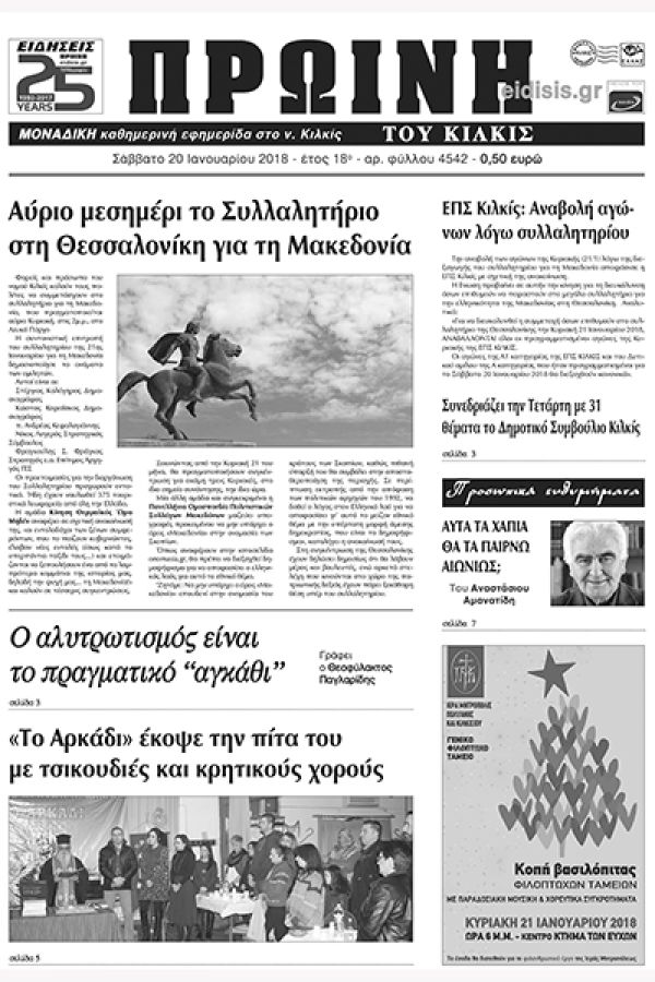 Πέντε χρόνια πριν. Διαβάστε τι έγραφε η καθημερινή εφημερίδα ΠΡΩΙΝΗ του Κιλκίς (20-1-2018)