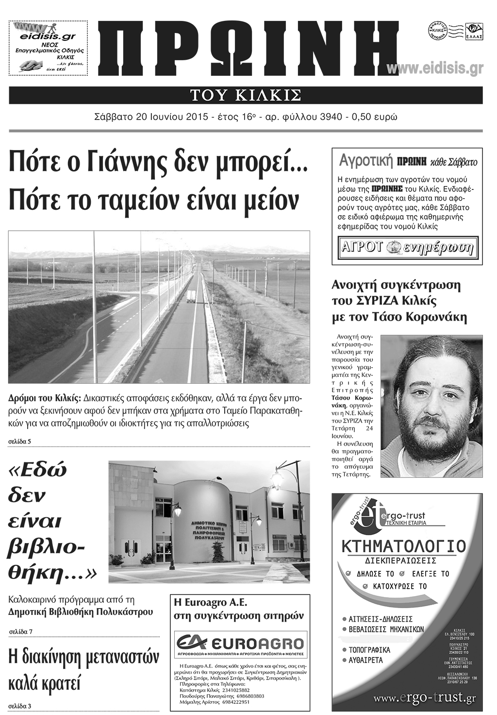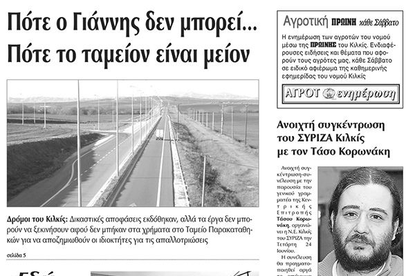 Πέντε χρόνια πριν. Διαβάστε τι έγραφε η καθημερινή εφημερίδα ΠΡΩΙΝΗ του Κιλκίς (20-6-2015)