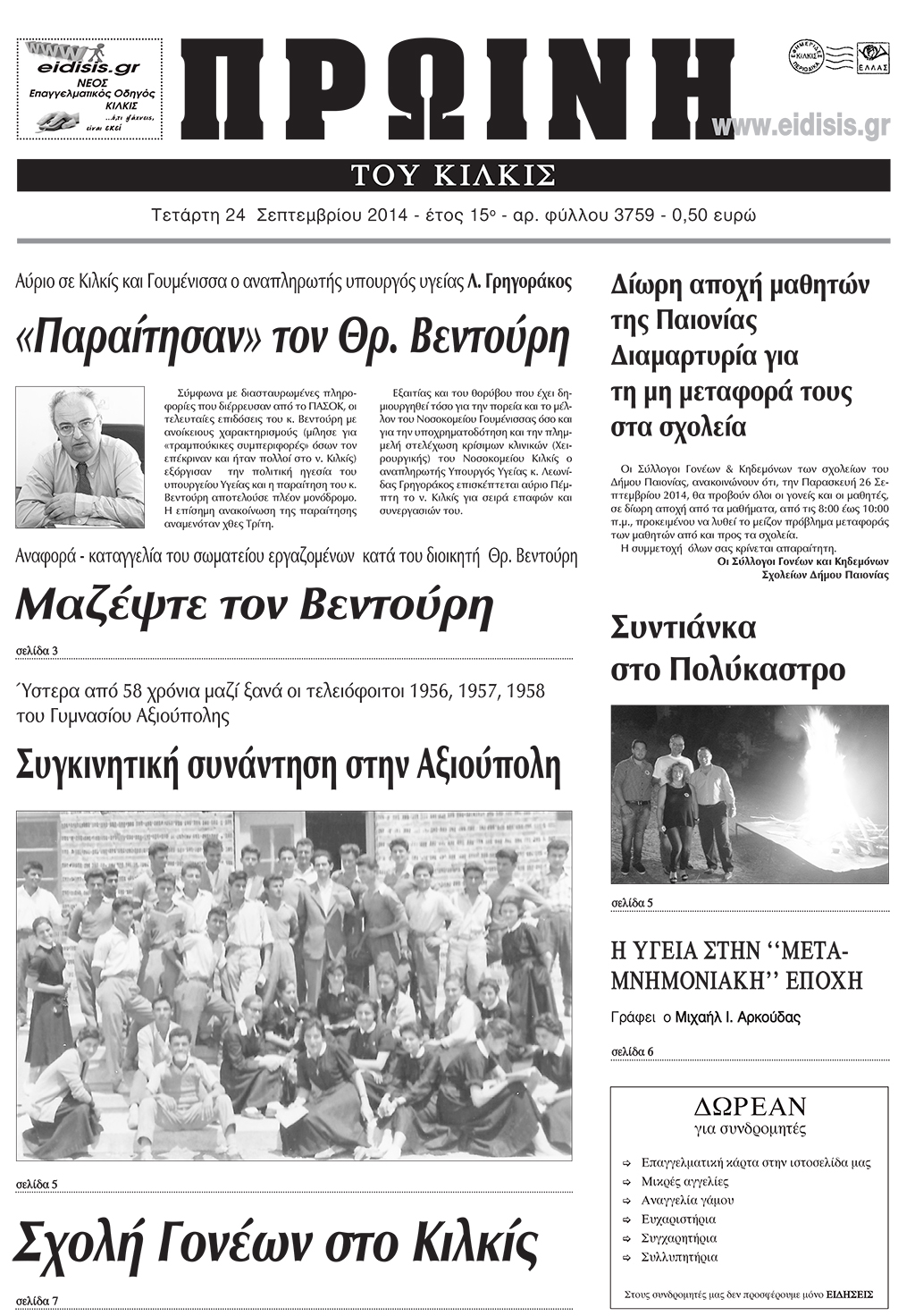 Πέντε χρόνια πριν. Διαβάστε τι έγραφε η καθημερινή εφημερίδα ΠΡΩΙΝΗ του Κιλκίς (24-9-2019)
