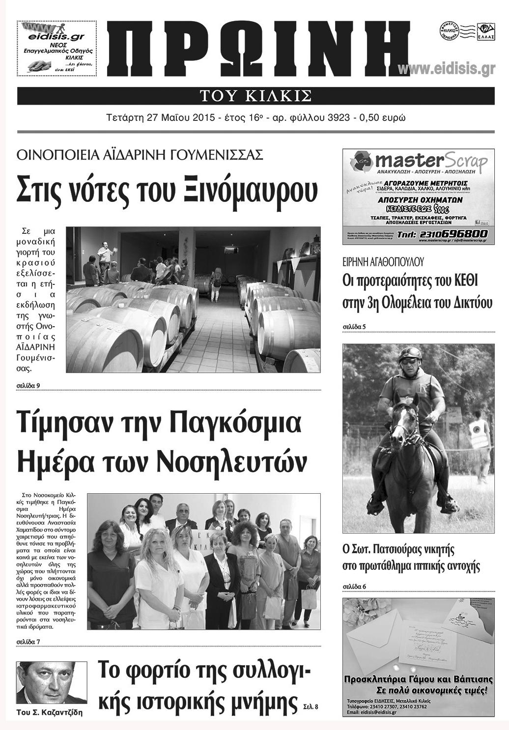 Πέντε χρόνια πριν. Διαβάστε τι έγραφε η καθημερινή εφημερίδα ΠΡΩΙΝΗ του Κιλκίς (27-5-2015)