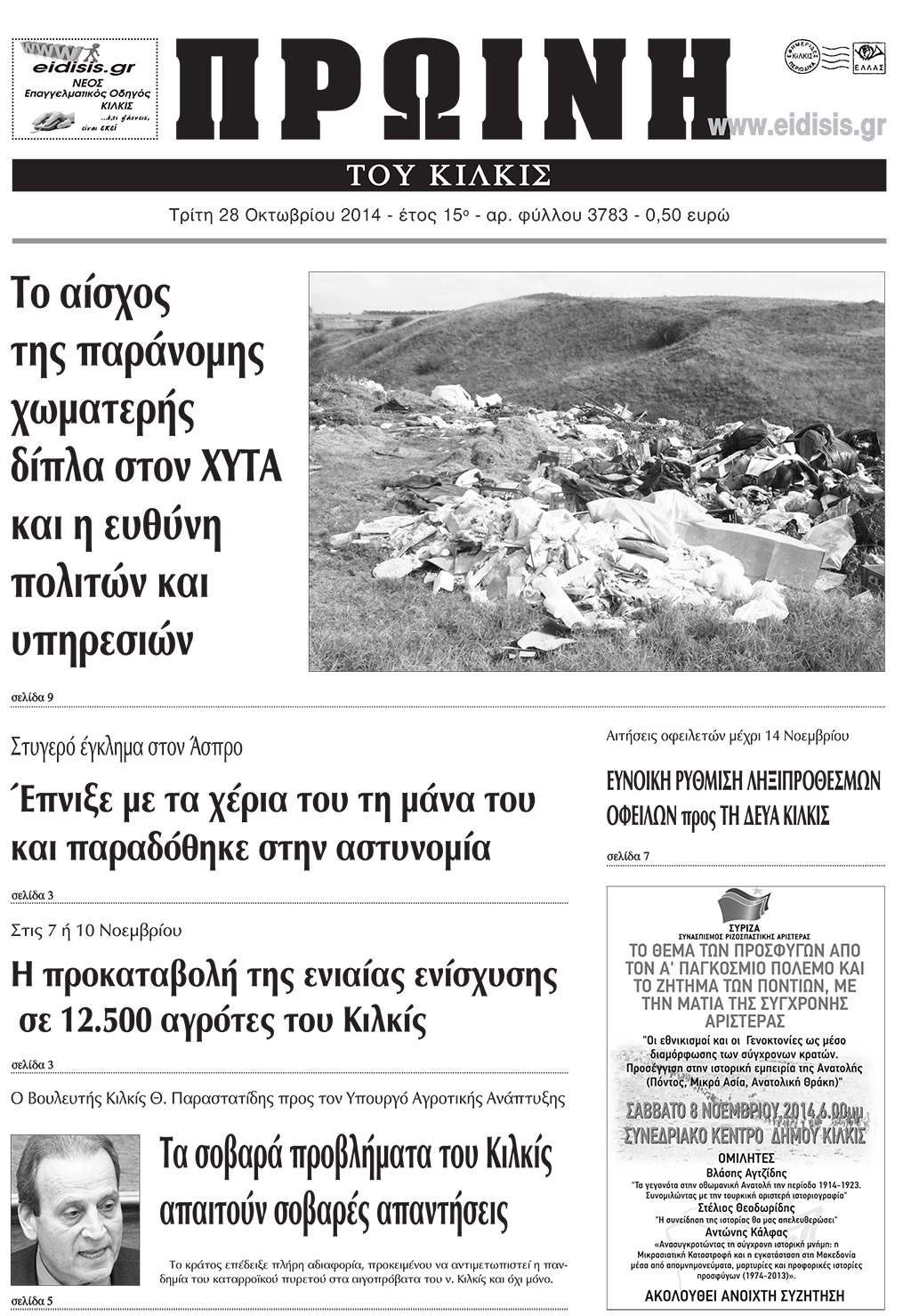 Πέντε χρόνια πριν. Διαβάστε τι έγραφε η καθημερινή εφημερίδα ΠΡΩΙΝΗ του Κιλκίς (28-10-2014)