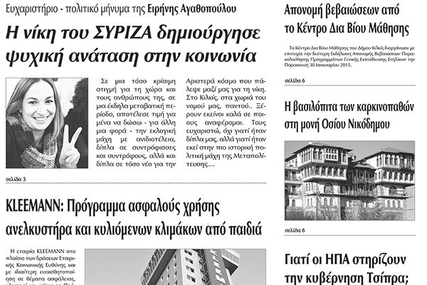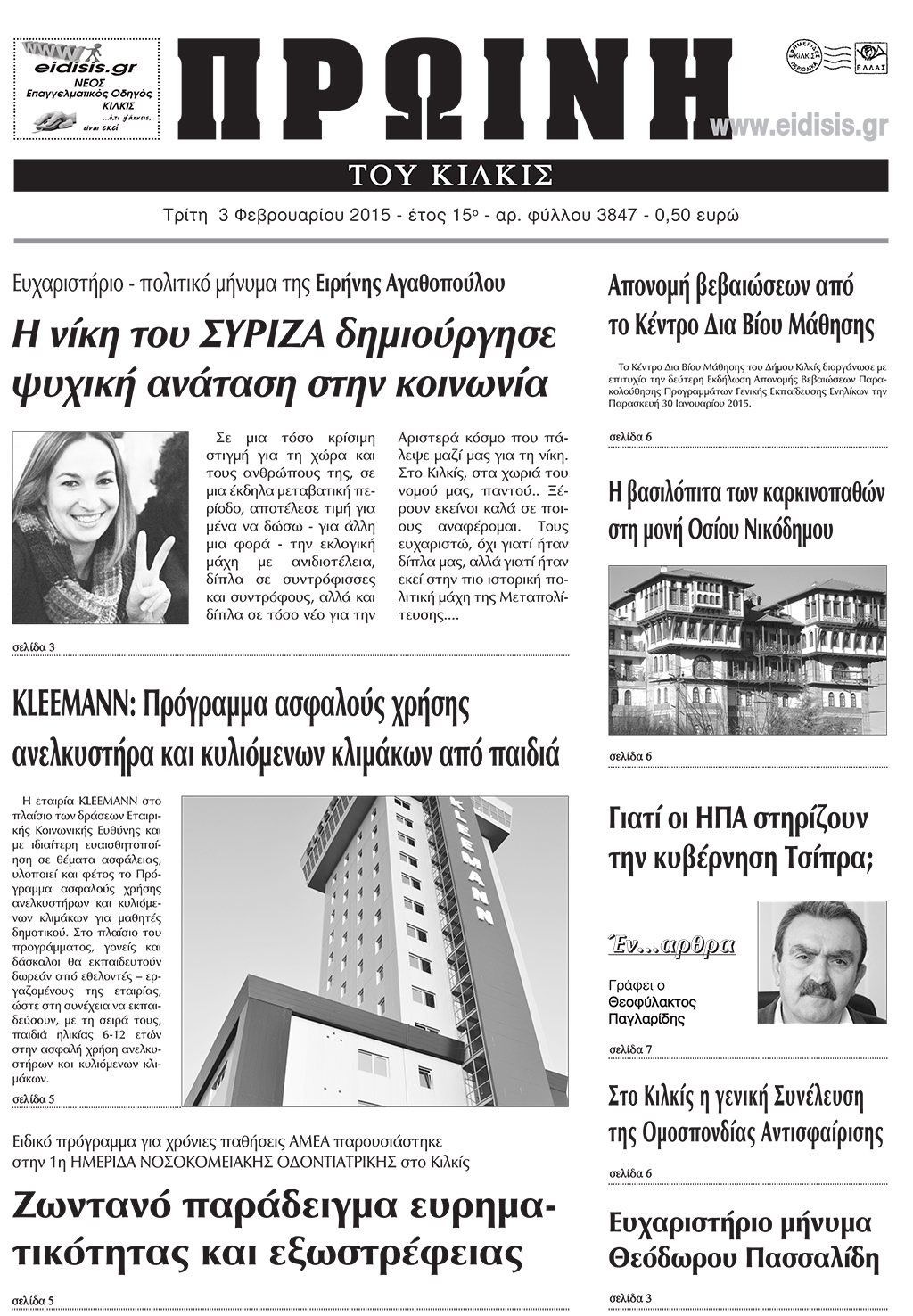 Πέντε χρόνια πριν. Διαβάστε τι έγραφε η καθημερινή εφημερίδα ΠΡΩΙΝΗ του Κιλκίς (3-2-2015)