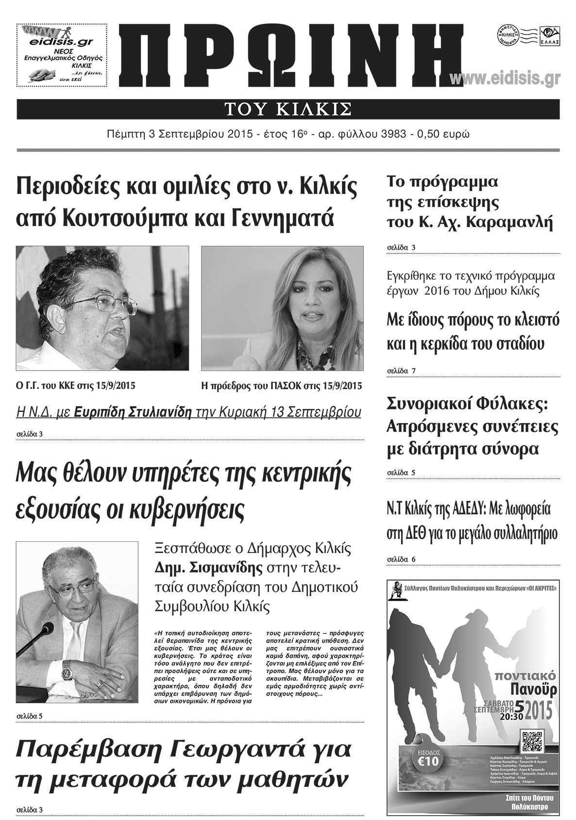 Πέντε χρόνια πριν. Διαβάστε τι έγραφε η καθημερινή εφημερίδα ΠΡΩΙΝΗ του Κιλκίς (3-9-2015)
