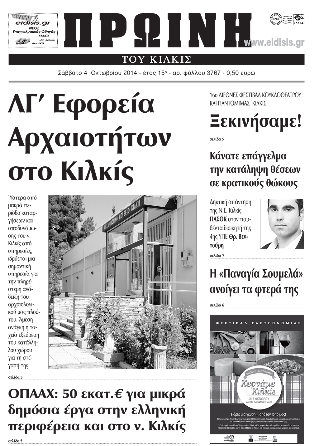 Πέντε χρόνια πριν. Διαβάστε τι έγραφε η καθημερινή εφημερίδα ΠΡΩΙΝΗ του Κιλκίς (4-10-2014)
