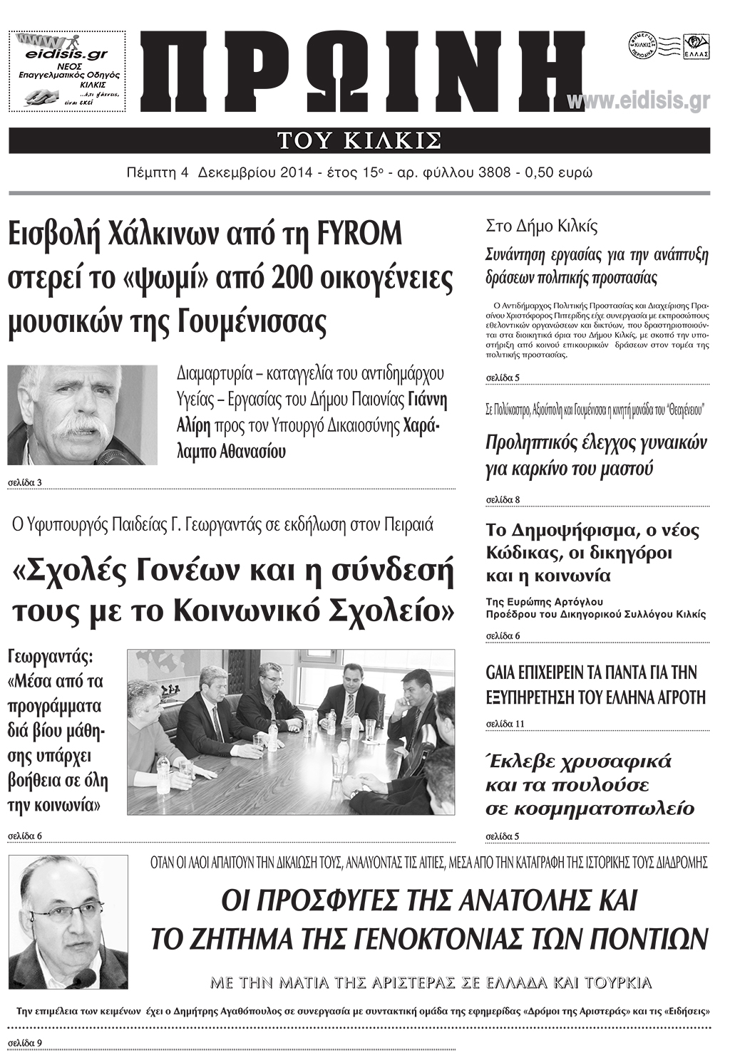 Πέντε χρόνια πριν. Διαβάστε τι έγραφε η καθημερινή εφημερίδα ΠΡΩΙΝΗ του Κιλκίς (4-12-2014)