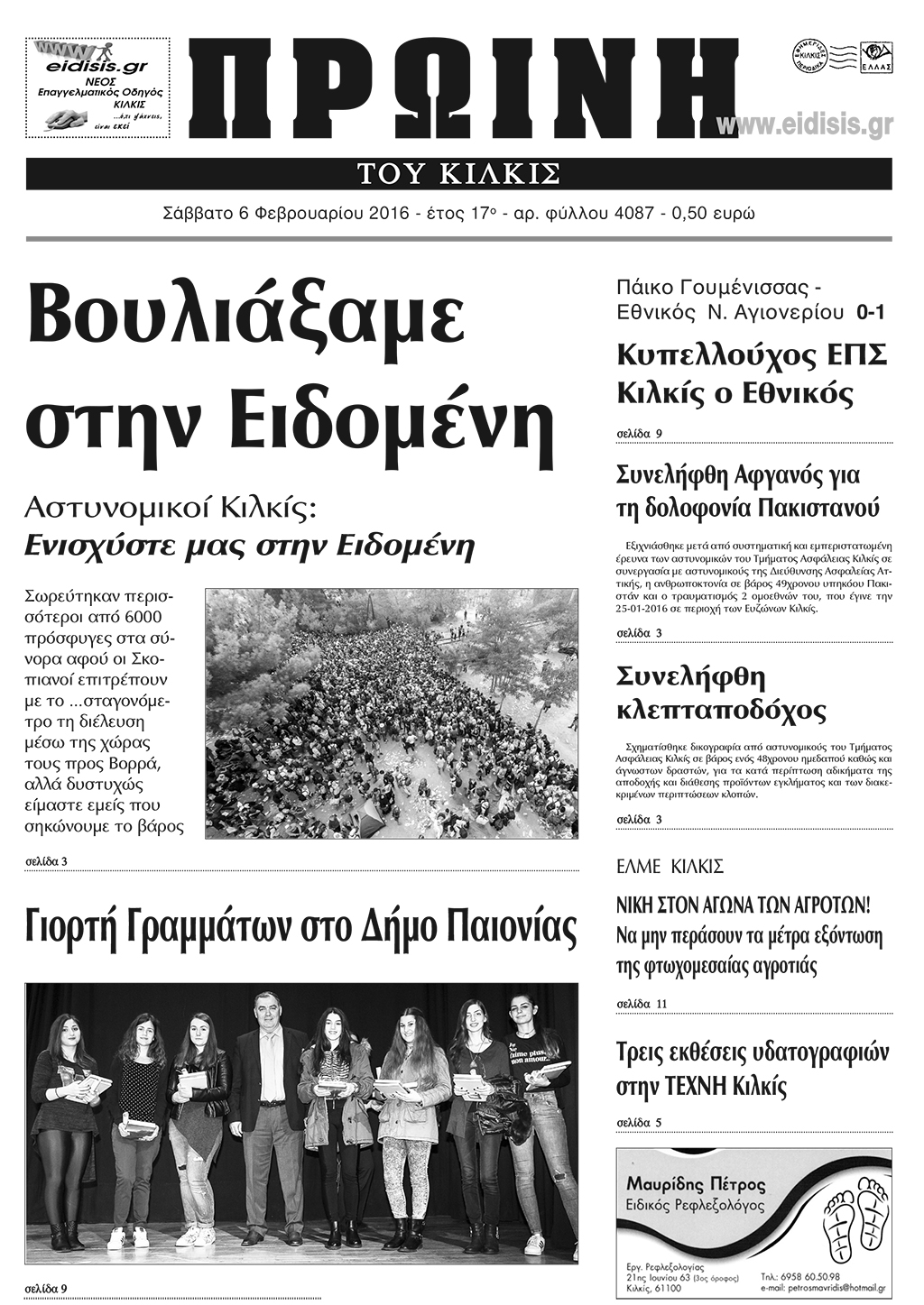 Πέντε χρόνια πριν. Διαβάστε τι έγραφε η καθημερινή εφημερίδα ΠΡΩΙΝΗ του Κιλκίς (6-2-2016)