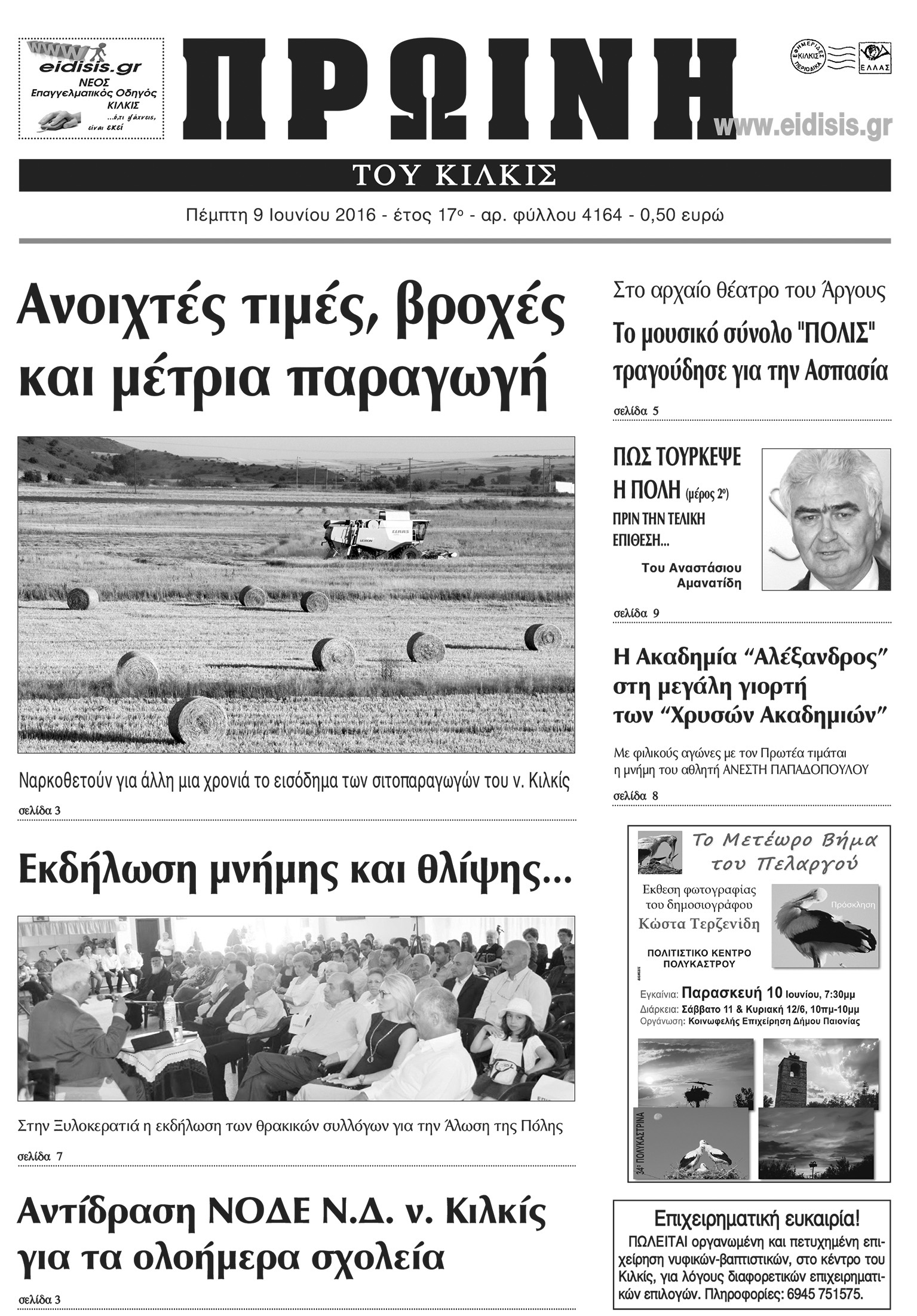 Πέντε χρόνια πριν. Διαβάστε τι έγραφε η καθημερινή εφημερίδα ΠΡΩΙΝΗ του Κιλκίς (9-6-2016)