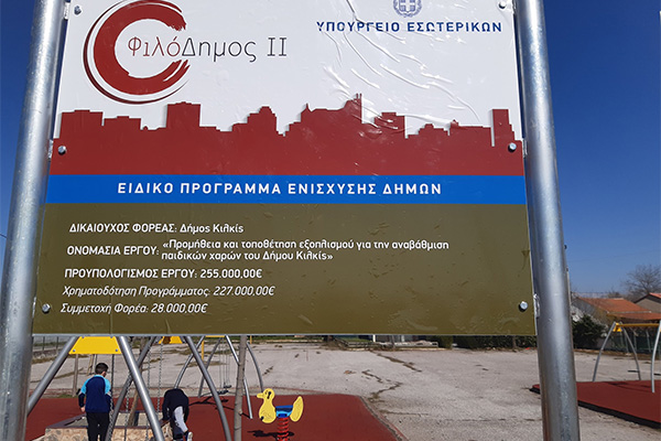 Η σύμβαση του Δήμου με την εταιρία πιστοποίησης έχει ως αντικείμενο την πιστοποίηση των παιδικών χαρών, την ανανέωση πιστοποίησής τους ανά έτος και τον έλεγχο του αθλητικού εξοπλισμού στα σχολεία της Πρωτοβάθμιας και Δευτεροβάθμιας Εκπαίδευσης του Δήμου Κιλκίς.