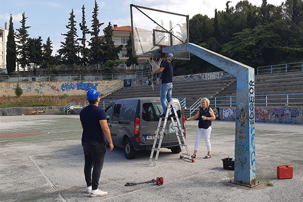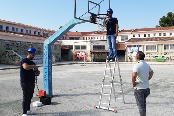 Τον εκπρόσωπο της εταιρίας συνόδευσαν στις επισκέψεις του στους προαύλιους χώρους σχολείων και στις παιδικές χαρές ο Αντιδήμαρχος Τεχνικών Έργων Ανέστης Πογέλης και η πολιτικός μηχανικός υπάλληλος της Διεύθυνσης Τεχνικών Υπηρεσιών Ζωή Σαϊρόγλου.