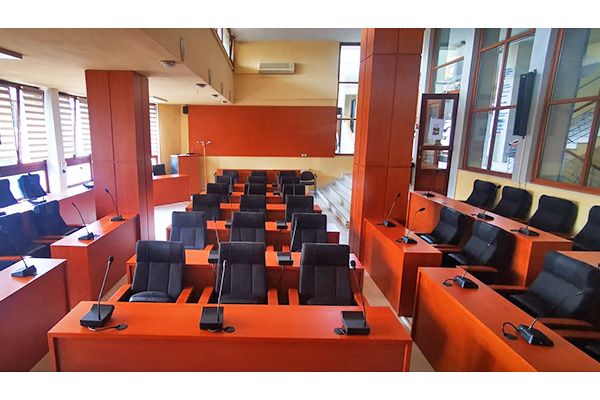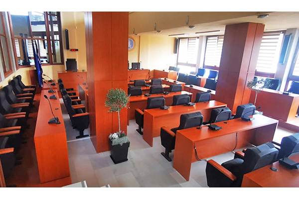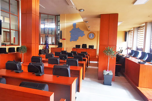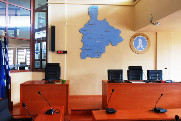 Την καλαίσθητη εικόνα του χώρου των Δημοτικών Συνεδριάσεων συμπληρώνουν ανθοστήλες καθώς και η ενίσχυση με φωτιστικά σώματα και μικροφωνικές εγκαταστάσεις.