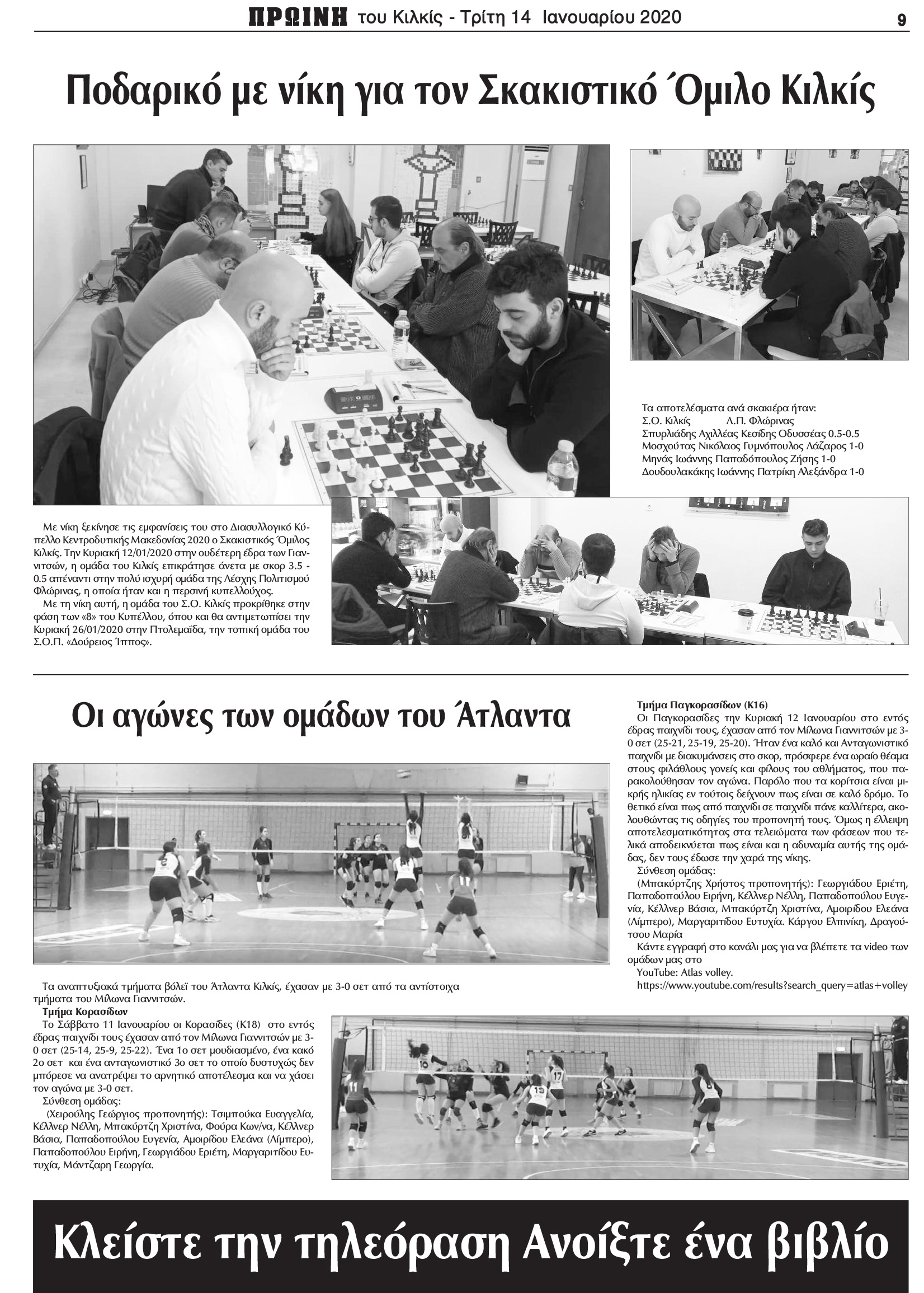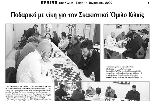 Πρωινή Κιλκίς (14-1-2020): Νίκη για τον Σκακιστικό Όμιλο Κιλκίς