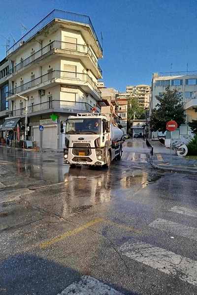 Από τον καλό προγραμματισμό και τη μεθοδική δουλειά των υπαλλήλων, που χρειάστηκε να κάνουν και διπλοβάρδιες, το κεντρικό αυτό τμήμα της πόλης ήταν ήδη καθαρό και είχε εξοικονομηθεί χρόνος στην περάτωση της διοργάνωσης για την πλύση των δρόμων πέριξ της Εμποροπανηγύρεως, χθες, με τη συνδρομή του πλυντηρίου και της υδροφόρας του Δήμου.