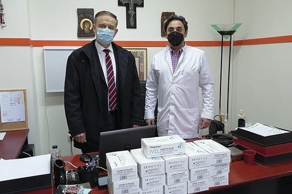 Στο ΚΥ Γουμένισσας ήταν παρών κατά την παράδοση και ο ιατρός και πρόεδρος του δημοτικού συμβουλίου Νίκος Καπουτζής. Ακολούθησε ενημέρωση εκ μέρους του προέδρου του νοσοκομείου και της εκπροσώπου της επιτροπής λοιμώξεων νοσηλεύτριας Γεωργίας Λυμπέρη για την πορεία των εμβολιασμών και τις τρέχουσες εξελίξεις, παρούσης και της εντεταλμένης συμβούλου υγείας Μαρίας Παλάνη.