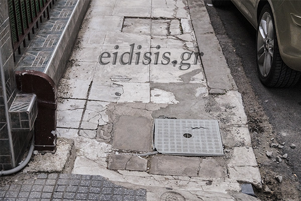 Δεν είναι όμως μόνο τα φρεάτια. Τα πεζοδρόμια της πόλης έχουν το κακό τους το χάλι. Και επειδή ο δήμος αποδεικνύεται ανεπαρκής στην έγκαιρη αποκατάσταση των "πληγών" και διότι "δεν είμαστε λαός". Όποιος θέλει, όποτε θέλει χωρίς καμιά κύρωση σπάει πλάκες πεζοδρομίου, ανοίγει τρύπες που δεν κλείνει, δημιουργεί παράνομους διαδρόμους από το σπίτι του στο δρόμο κ.ο.κ