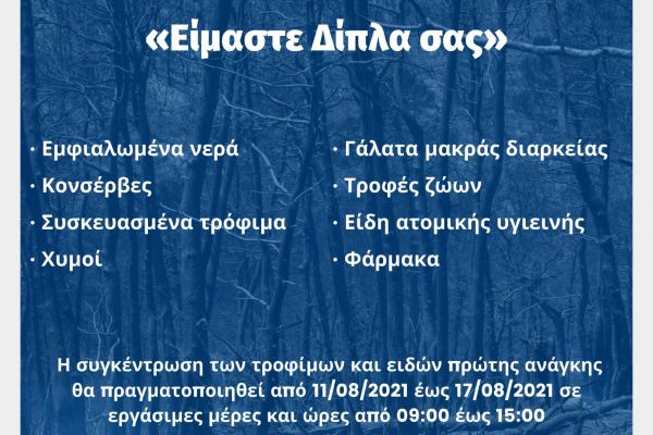 Πολίτες και επιχειρήσεις της Π.Ε. Κιλκίς έχουν, ήδη, στηρίξει την προαναφερόμενη δράση αλληλεγγύης προσφέροντας αγαθά και είδη πρώτης ανάγκης. Όσοι επιθυμούν να στηρίξουν τους συμπολίτες μας, μπορούν να προσέρχονται έως 17-8-2021 στο Διοικητήριο του Κιλκίς (από τις 9π.μ. έως τις 3 το μεσημέρι) έχοντας λάβει τις απαραίτητες πληροφορίες, καλώντας στο τηλέφωνο 23413-53611.