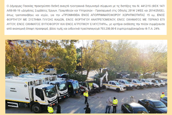 Η υπηρεσία καθαριότητος του δήμου Παιονίας με την προμήθεια νέων οχημάτων και με την διαρκή προμήθεια κάδων, οι πρώτοι θα παραληφθούν την άνοιξη του 2022, θωρακίζεται για το μέλλον και αναβαθμίζει ουσιαστικά τις παρεχόμενες υπηρεσίες προς όφελος των πολιτών.