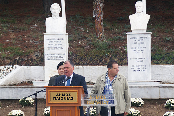 Στο χαιρετισμό του ο Δήμαρχος Παιονίας, κος Γκουντενούδης, αναφερόμενος στα αγαθά της ελευθερίας και αξιοπρέπειας των αγώνων των λαών. Έκανε ειδική μνεία στο «μεταναστευτικό» που αποτελεί εδώ και μήνες το βασικό ζήτημα όχι μόνο της περιοχής αλλά συνολικά της Ευρώπης.