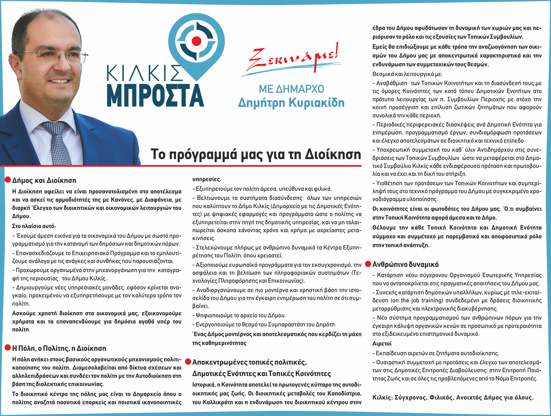 Το πρόγραμμα του Δημήτρη Κυριακίδη για τη Διοίκηση του Δήμου Κιλκίς